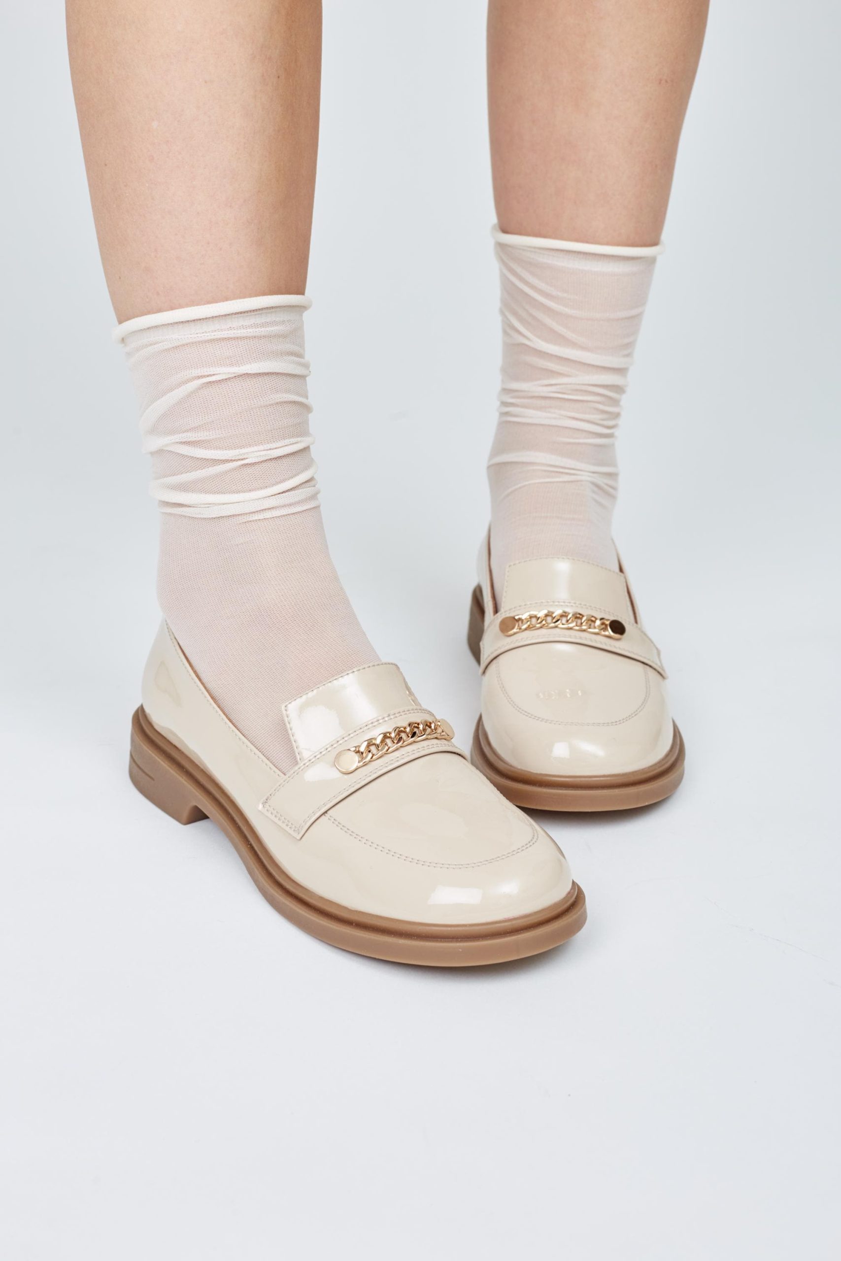 Check out our beige women’s patent leather loafers with chain decor that are perfect for your smart casual look! Designed for effortless summer wear, these loafers combine premium materials with a relaxed vibe for everyday elegance.