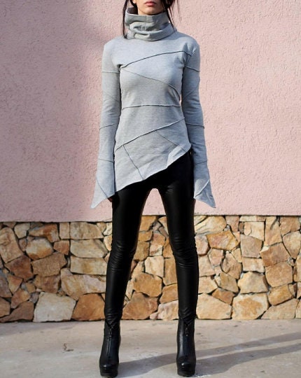 This long sleeve grey asymmetric blouse is a go-to choice for women seeking both comfort and distinctive modern style.
