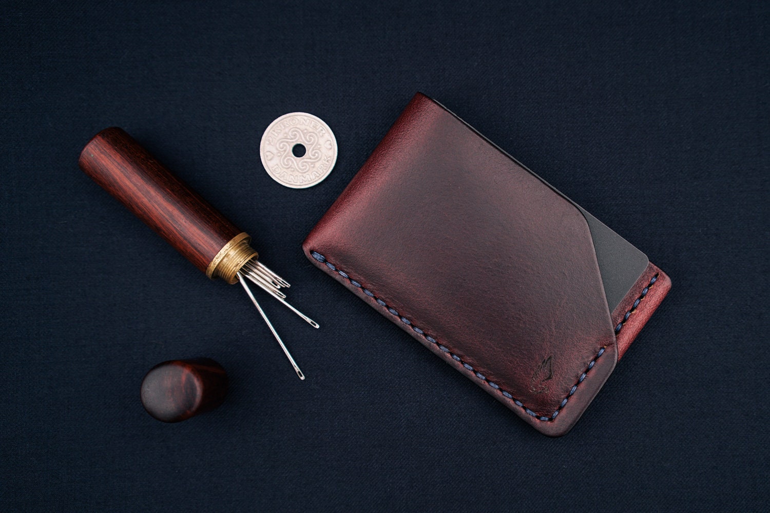 Horween Leather Card Holder Wallet In Burgundy Chromexcel