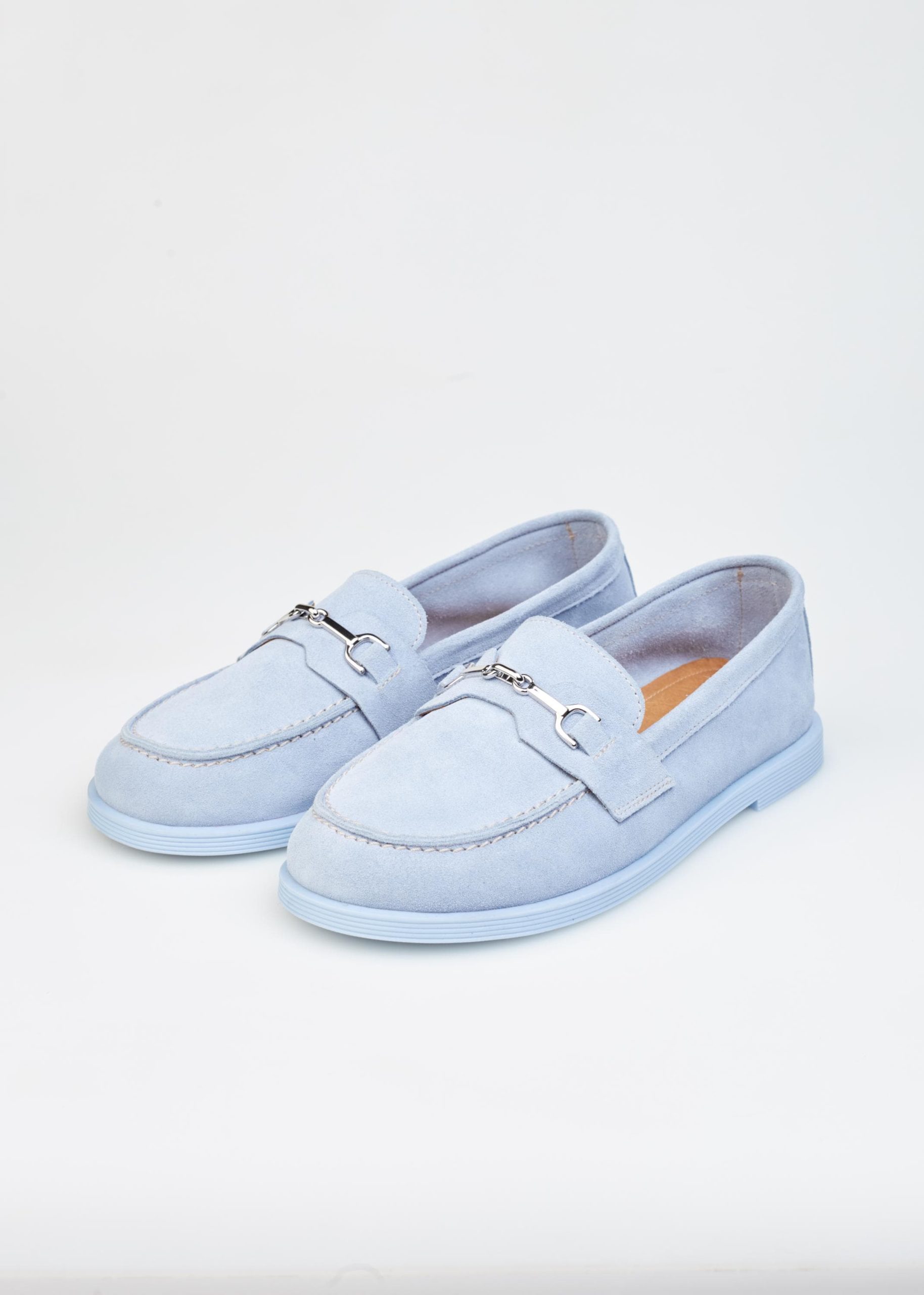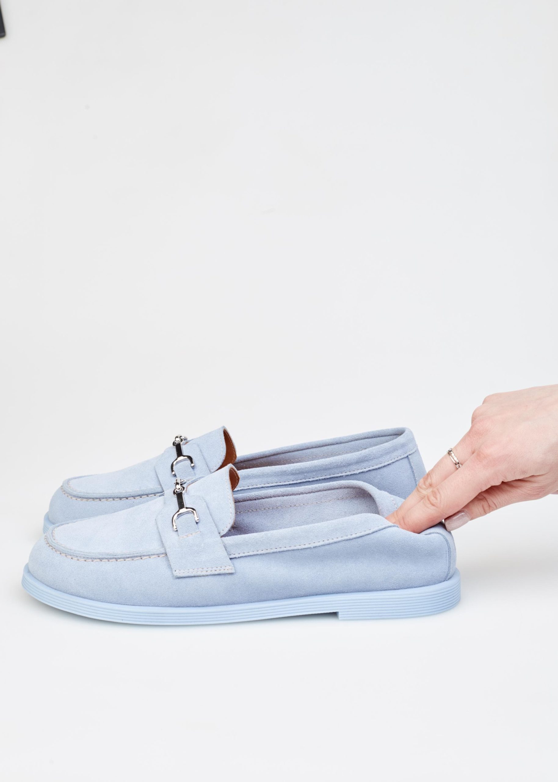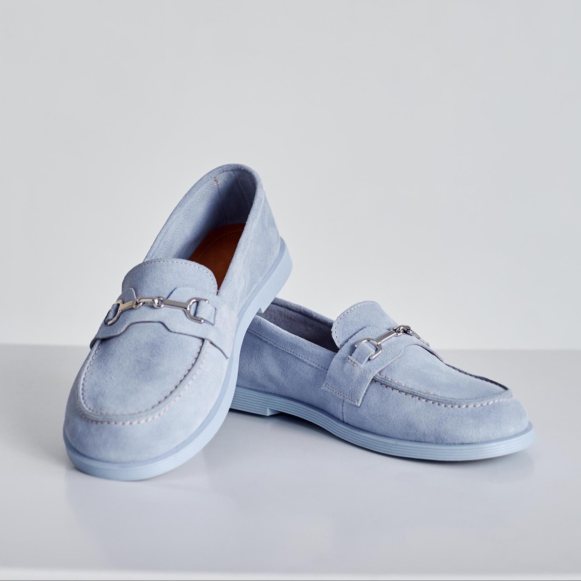 Light Blue Suede Loafers Women’s Natural Leather Casual